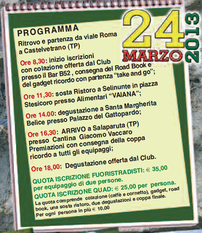 Si svolgerà a Castelvetrano, domenica 24 MARZO 2013, il “7° Country Life Day – Nelle Terre del Gattopardo”, raduno nazionale off-road riservato a 4×4 e QUAD.