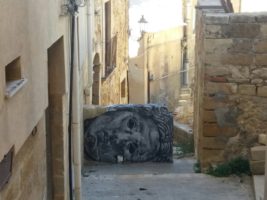 L’associazione culturale Peppino Impastato supporta così uno street artist (uno di quelli che compiuta l’opera lo siglano con un acronimo o un nick name), un murale.