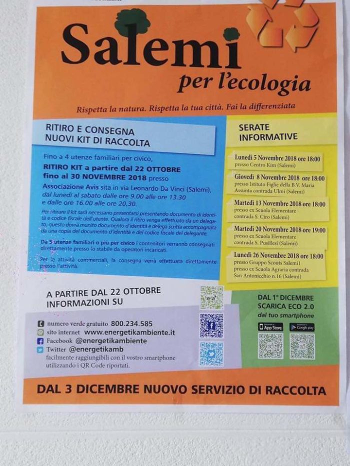 Salemi, Nuovo servizio di raccolta differenziata, il calendario e i giorni i cui ritirare il kit