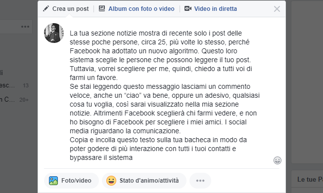 Una nuova bufala Facebook si sta diffondendo molto velocemente. Dopo essere nata diverso tempo fa, anche in diverse versioni, sta raggiungendo il suo picco massimo ed è assai facile vederla comparire sulla